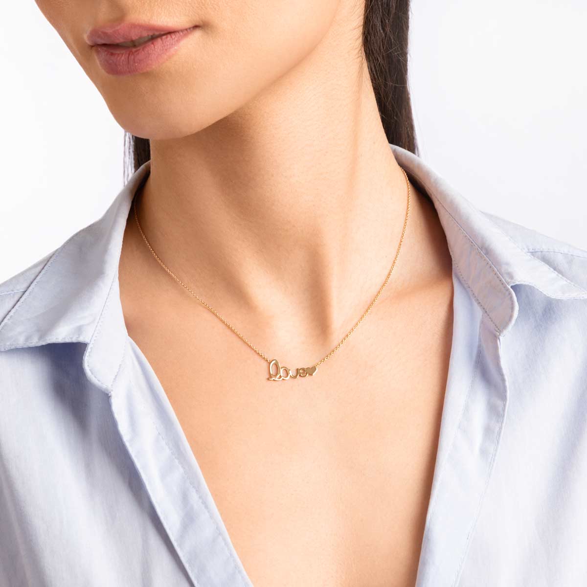 گردنبند طلا Love (عشق) ، ساخته شده از طلای ۱۸ عیار و کاملاً دست ساز می باشد.